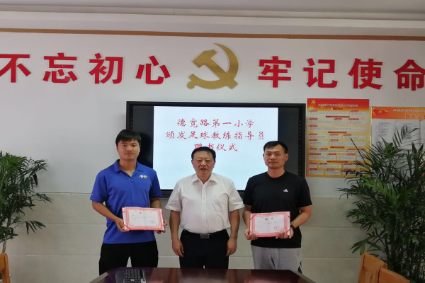 近日,安庆市德宽路第一小学聘任体育学院项和平、乔伟两位老师为校园足球指导员。