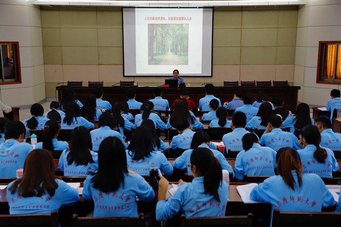10月9日,beat365官网第十一期“青年马克思主义者培养工程”培训班专题讲座(以下简称“青马班”)在行政楼一楼会议室举办,马克思主义学院副教授陶春丽作“青年马克思主义者是怎样炼成的”专题讲座。100余名学员胸配团徽,身着统一的蓝色班服聆听讲座。