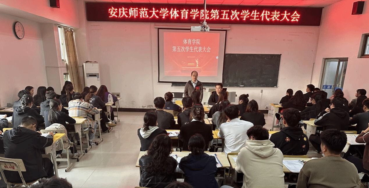 11月8日,体育学院在体育馆多媒体教室召开第五次学生代表大会,学院党委副书记王玮、团委负责人出席大会,学院110名学生代表参加会议。