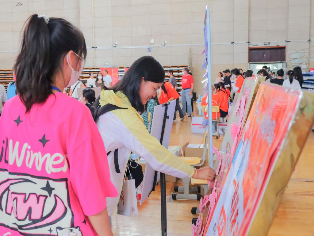 思想政治教育专业2022(1)班的李星语一来到报到处,便收到了来自志愿者们的热情接待,左手拿着爱心信,右手提着中秋月饼“大礼包”,她的脸上不禁笑开了“花”。“从报到入学事项到校园生活建议,一位学长在信中向我传授了新生独家‘宝典’,这让我更期待接下来的大学生活了!”收获满满之余,他还在迎新处的心愿墙上贴上了自己的愿望便利贴。“‘以梦为马,不负韶华’,希望能够在不久的将来遇见更好的自己!”