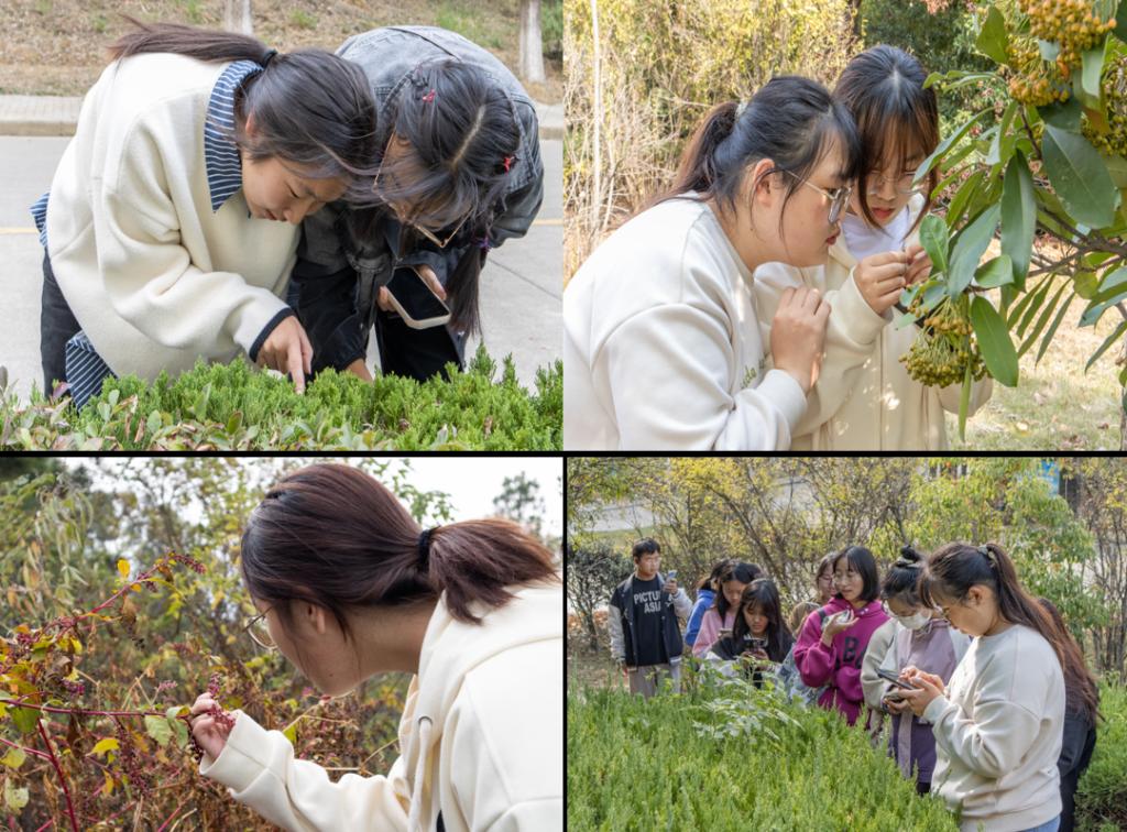 “女贞属于木犀科,它的叶子和桂叶十分相似……”拿着手机拍照搜索,跟随队长倾听讲解,一群群学生围着植物“开讲授课”,成为校园里一道道“靓丽风景”,吸引了沿途不少学生的注意力。11月4日,大学生生命科学协会在龙山校区内开展校园植物认知活动,带领近百名学生游览校园,认识校园生活中常见植物。