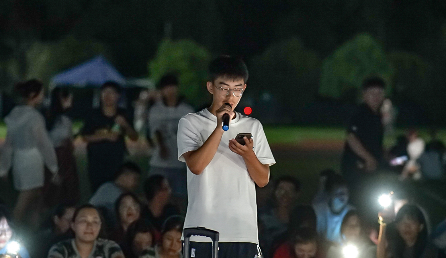 在近三个小时的中秋晚会中,歌曲《样》勾起了大家对青春话题的无限遐想;活力四射的街舞串烧,热情高昂、技秀全场;《云烟成雨》的演唱者用轻柔的声音诉说着茫茫人海遇见你的小庆幸;《后会无期》的深情演绎引发学生们关于相遇和离别的共鸣;相声《乱炖》用诙谐幽默的语言和手舞足蹈的肢体动作博得满堂欢笑……观众们跟着音乐打着节拍,为演唱者们伴奏,挥舞着闪光灯汇成流动的星河,把晚会氛围推向高潮。