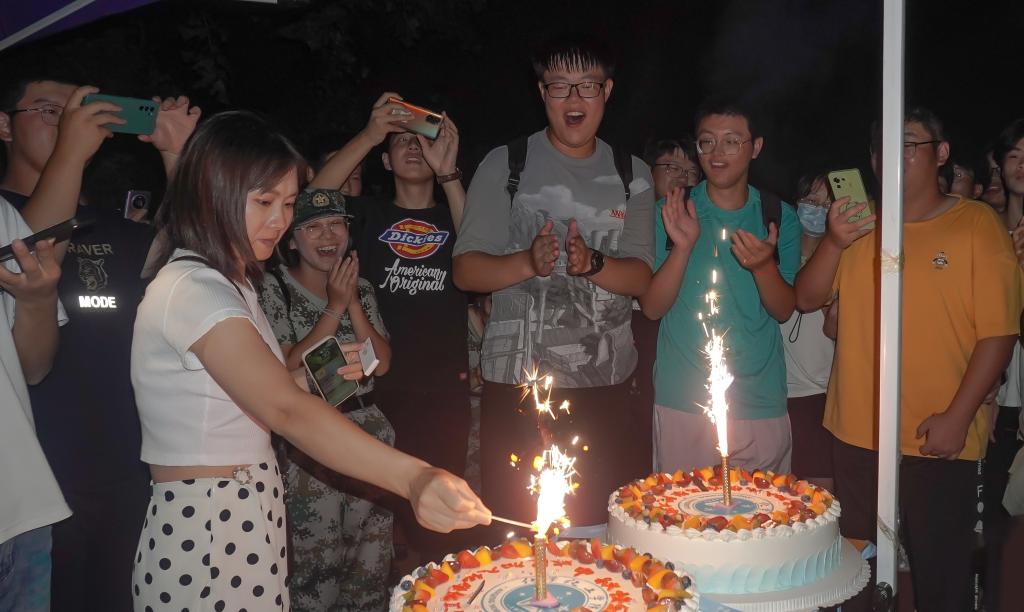 “这是什么神仙学院,订制院徽专属蛋糕,这样的学院谁能不爱。”订制蛋糕作为本次中秋晚会的“压轴节目”,引得操场上的观众惊羡不已。450名新生在操场上纵列排成四队,分批次、按次序领取蛋糕。材料化学专业2021级(1)班的李忠言“抢”到了第一块“限量”蛋糕,她第一时间发了朋友圈表白学院。李忠言笑称,她觉得今天的蛋糕比以往更加香甜,“学院真的太用心了,不仅有节目可以观看,还能享用专属蛋糕,祝愿学院越来越牛!”她说。