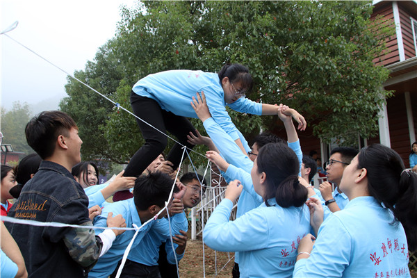 本次培训由“不倒森林”、“风平浪静”、“智力电网”、“凤舞九天”等游戏环节组成。“这些游戏契合‘不忘初心,砥砺前行’的主题,重在让学生们学会合作,了解团体的重要性。”张老师说。