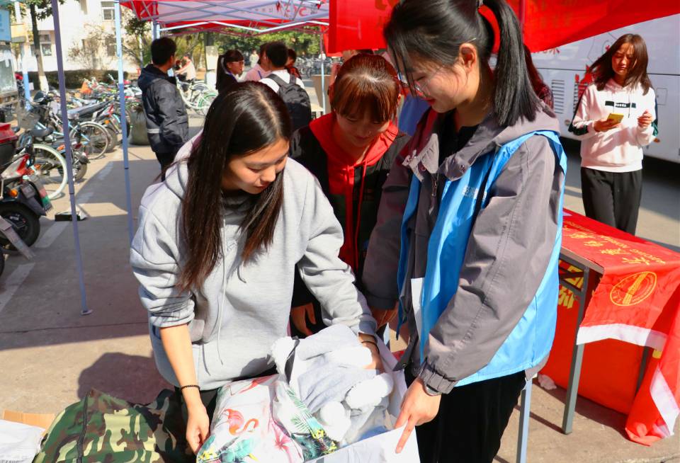 11月16日至17日,校园内多了些别样的风景,来自各个学院的同学们拎着大包小包的旧衣物,赶到学校三个餐厅门口的捐衣处,献出自己的爱心。由校青年实践服务中心、晨曦志愿服务队、“砹锌”志愿服务中心搭起的三个红色帐篷前,前来捐衣的同学络绎不绝,两天共计募捐到旧衣物3000余件。