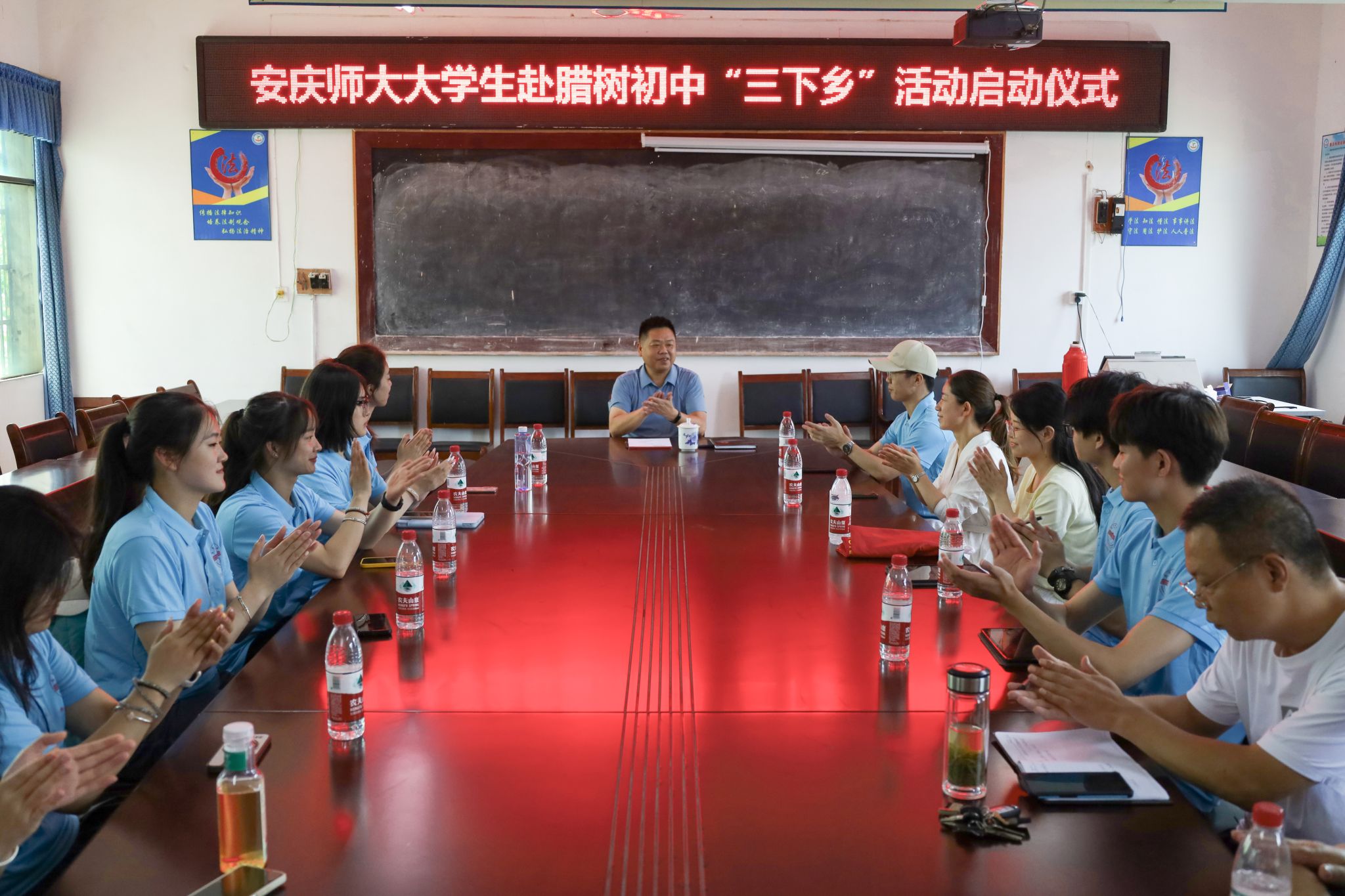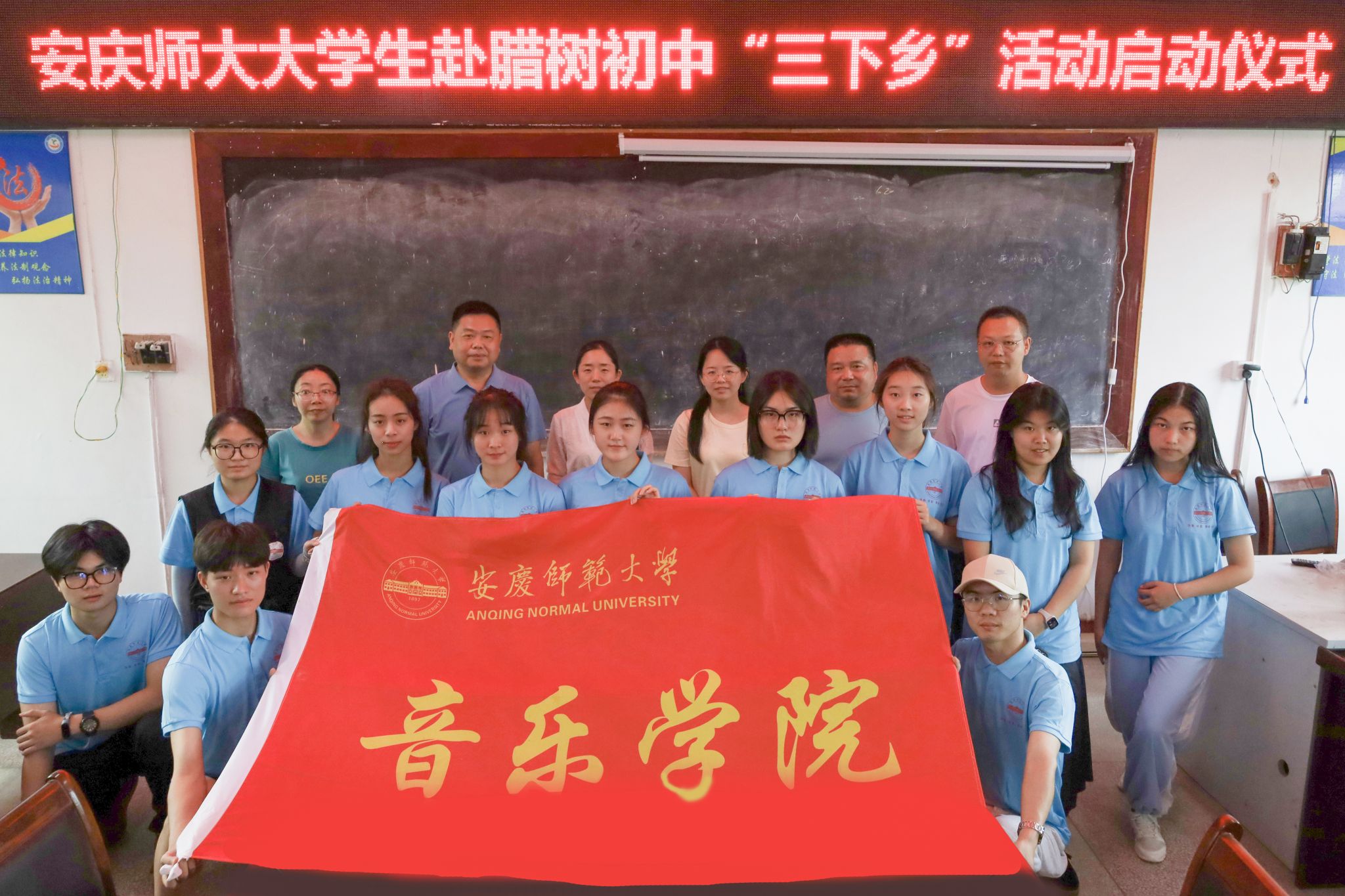7月6日,beat365英国官网网站音乐学院“音为爱”教育关爱实践团前往安庆市怀宁县腊树初级中学开展暑期“三下乡”实践活动并举办启动仪式。腊树初级中学校长史志学,音乐学院团委书记、团队指导教师、13名实践团成员参加了启动仪式。
