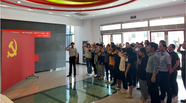 在东至木塔红军纪念馆,真切感人的历史镜头,呈现了一幅幅革命先烈艰苦卓绝斗争的波澜壮阔画卷。全体党员通过讲解员的生动讲述,共同参观了馆内首尾两厅和红色土地风雷激荡、红色军队烽火征程、红色政权旗帜高扬、红色基因绵延传承四大主题展厅,观看了《东至红色记忆》专题纪录片。一件件饱经风霜的物品、一幅幅感人至深的图片、一个个生动真实的红色事迹,再现了老一辈无产阶级革命家严于律己、艰苦朴素、克己奉公的作风和英勇顽强、不惧困难、不怕牺牲的革命精神。参观完毕后,学院党委书记夏宏宇带领全体党员在纪念馆中进行了入党宣誓,面对鲜红的中国共产党党旗,党员们重温入党誓词,回忆入党初心,再一次受到了心灵的洗礼和党性教育。