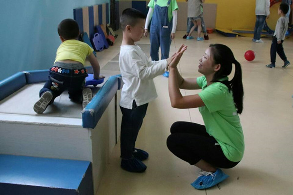 “我们手拉手围成一个圈。”玫瑰花制作完成后,志愿者带着孩子们来到游戏活动室进行游戏课。“我们每天24个小时都要围着孩子转,志愿者带着他们做游戏,让孩子脱离一会我们,这对我们孩子来说有很大好处。”家长们透露,他们的孩子来到这个学校以后,会接受别人的触碰了,以前他们都不敢带孩子出门。