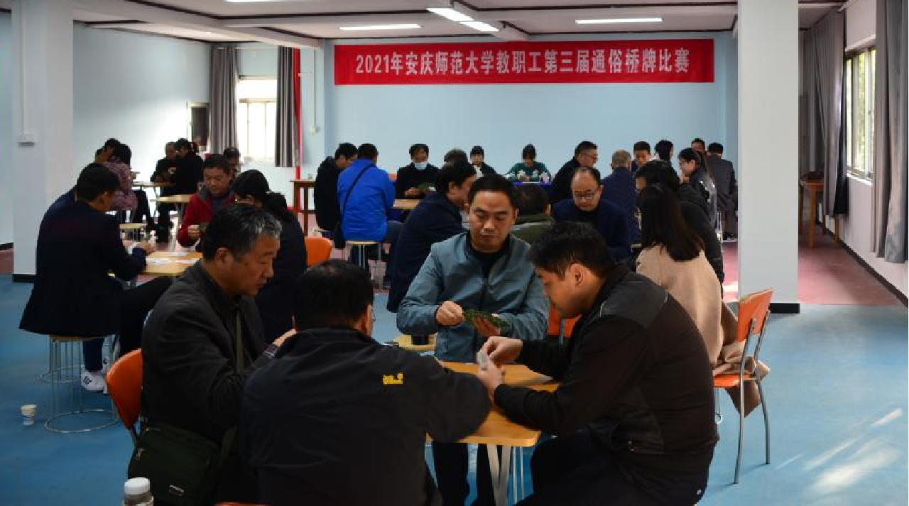 在前期各分会选拔的基础上,20个分工会的40名教职工参加了比赛。比赛采用安徽省江南片高校通俗桥牌比赛规则,各分会经抽签分为A、B两组,六轮循环赛制。比赛中,各位选手运筹帷幄,配合协作,赛场上充满了既斗智斗勇又友谊和谐的氛围。经过一天的激烈角逐,机关三分会潘开颜、詹文法,在比赛十分激烈胶着的情况下,以微弱小分优势获得A组第一名;传媒学院的张万茂、金全龙,以全胜战绩获得B组第一名,他们将代表学校参加江南片高校第四届通俗桥牌比赛。