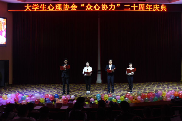 动感的节奏、炫彩的灯光和欢乐的舞蹈构成了一台精彩的晚会。4月1日下午,大学生心理协会20周年庆典于龙山校区图书馆东报告厅上演。教师教育学院部分老师与心理协会成员等200余人共同观看了晚会表演。