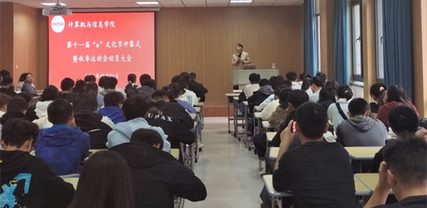 金秋送爽,丹桂飘香。在这美好的季节里,为进一步提升广大青年学子的科技和体育文化素养,10月26日,计算机与信息学院举办第十一届“e”文化节开幕式暨秋季运动会动员大会。学院党委书记陈银凤、专兼职辅导员、全体参赛运动员、学生会全体成员、2021级班长团支书等220余名学生参加了此次大会,大会由党委副书记江晋剑主持。