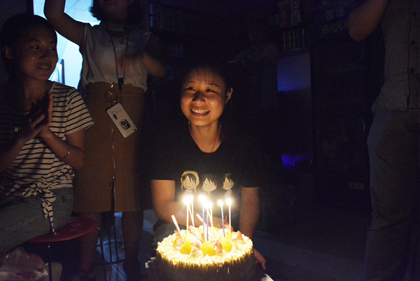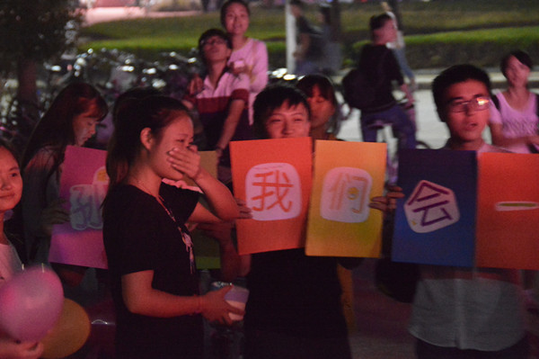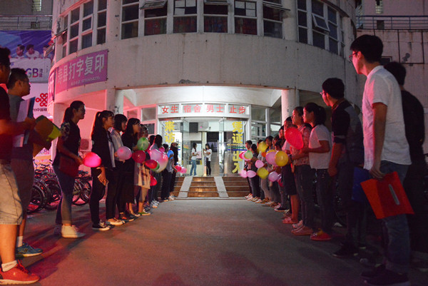 “之前完全不知道,今晚出来是室友骗我说出来吃饭。”孙梅说。当她走出寝室楼大门的时候,还以为有人在表白,直到看到每一张笑脸都是自己再熟悉不过的同班同学,才反应过来今天这次惊喜是为自己准备的。“太感动了,我的同学是最好的同学,新闻班是最有爱最温暖的班级。”