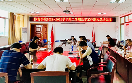 6月22日,体育学院召开2021—2022学年第二学期教学工作期末总结会议,教学办公室、教研室、实验室、场馆中心等11个科室负责人及相关工作负责老师参加会议。会议由副院长林秋菊主持。