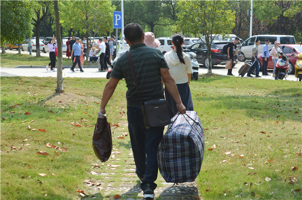 太阳渐渐升起,温度也在渐渐升高,檀方菲父母的衣服早已被汗水打湿,但他们始终未将肩上沉甸甸的行李放下。“我们在外面等着,你进去报到吧,注意听学长学姐的话。”在学校篮球馆报到点外面,夫妻二人叮嘱到。看着女儿远去的背影,他们感慨万千。“时间过得真快,不经意间女儿已经上大学了,趁着这段时间,再多多帮她做点事,以后可全要靠她自己了。”