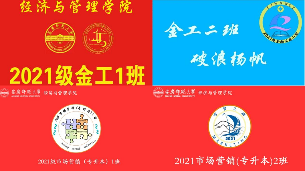 “树树皆秋色,山山唯落晖”。从晚夏到初秋,学院辅导员李颖老师所带的2021级市场营销(专升本)与金融工程专业的同学们来到beat365英国官网网站已经满一个月了。这一个月里,他们举行了开学典礼,进行了大学必备的军训以及班级委员会成员的选举,大家也一起在学校度过了进入大学的第一个中秋节。为了进一步增强班级的凝聚力,增进同学们之间的感情,在9月16日晚的第一次开学班会上,李颖要求各班级设计本班的班徽和班旗。同学们积极参与,群策群力,两个专业4个班级都先后在一个月内设计出了各具特色的班徽和班旗。