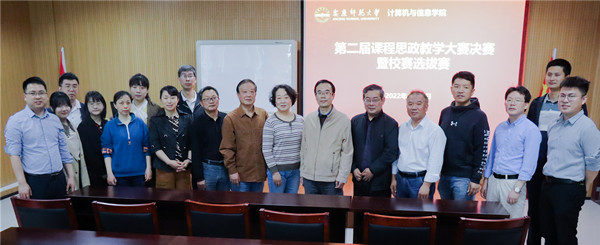 为进一步发挥课堂育人的主渠道作用,切实将立德树人贯穿于人才培养体系中,4月28日,计算机与信息学院在计算机楼L302举办第二届课程思政教学大赛决赛。钱萌、陈铁军、程再玲、程玉胜、江克勤等5位教师受邀担任评委,来自学院各教研室的共9名老师参加了此次比赛,最终曹立群和宋静获得一等奖并将被推荐参加校级大赛。