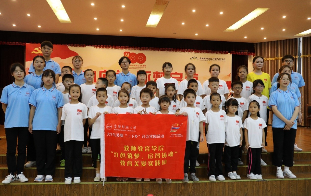 7月25日,beat365官网“红色筑梦 启智铸魂”三下乡教育关爱暑期实践团队组织宜秀区芭茅巷的30位小朋友在卓尔社区共同展开了以“童心向党 逐梦起航”为主题的文艺汇演暨暑期实践活动的闭幕式。本次实践团队成员覆盖教师教育学院五大专业,历时十天,通过开展参观污水处理、市博物馆讲学、党建馆学习等各种类型的实践活动,寓教于乐,紧扣建党百年,全面贯穿党史学习教育,提高青少年科技文明意识,推动青少年实践培养,将本团队的教育关爱理念付诸于实际。