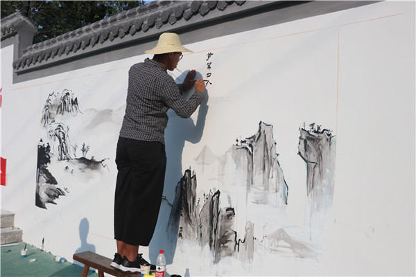 “墙绘主要体现的是社会主义核心价值观,有伟人介绍、美德故事等等,还结合科创小镇大众创业的主题绘制了创新创业的内容。”学生负责人庆少仪介绍,考虑到附近的社区居民也会来这里休闲放松,他们特意增加了两幅古风山水画,以适合民娱氛围,供居民赏阅。