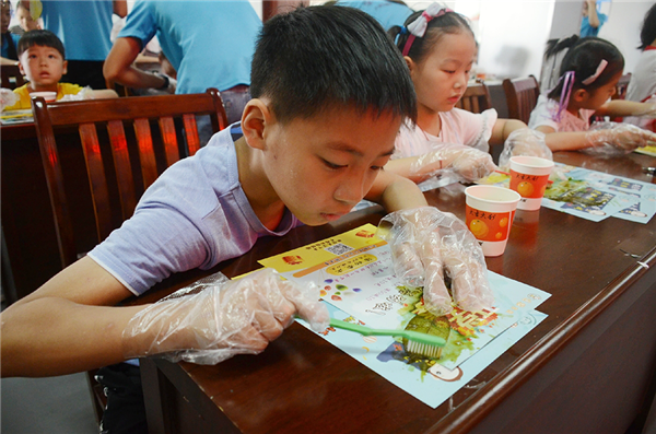 10号上午,安庆师大学生来到安庆市永林社区支教,在为社区留守儿童开展的以垃圾分类和再利用为主题的环保知识课堂中,孩子们学习了手工制作叶脉书签的方法。