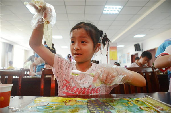 环保课堂刷叶脉,桂花叶变废为宝