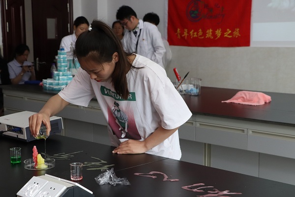 为推深做实党史学习教育,把党史学习教育同推动工作、解决实际问题结合起来,贯彻落实“我为群众办实事”,6月2日,化学化工学院教工第三党支部全体党员观摩指导趣味化学魔法科普活动,旨在提高趣味化学科普浩然工作室公益课堂质量。在本次科普公益课堂中,浩然科普工作室为大家展示了大象牙膏、热冰书法、点水开花、五彩冰雕、魔法点灯、掌中火焰等十余个趣味化学魔法科普实验,80余名学生参加了本次活动。
