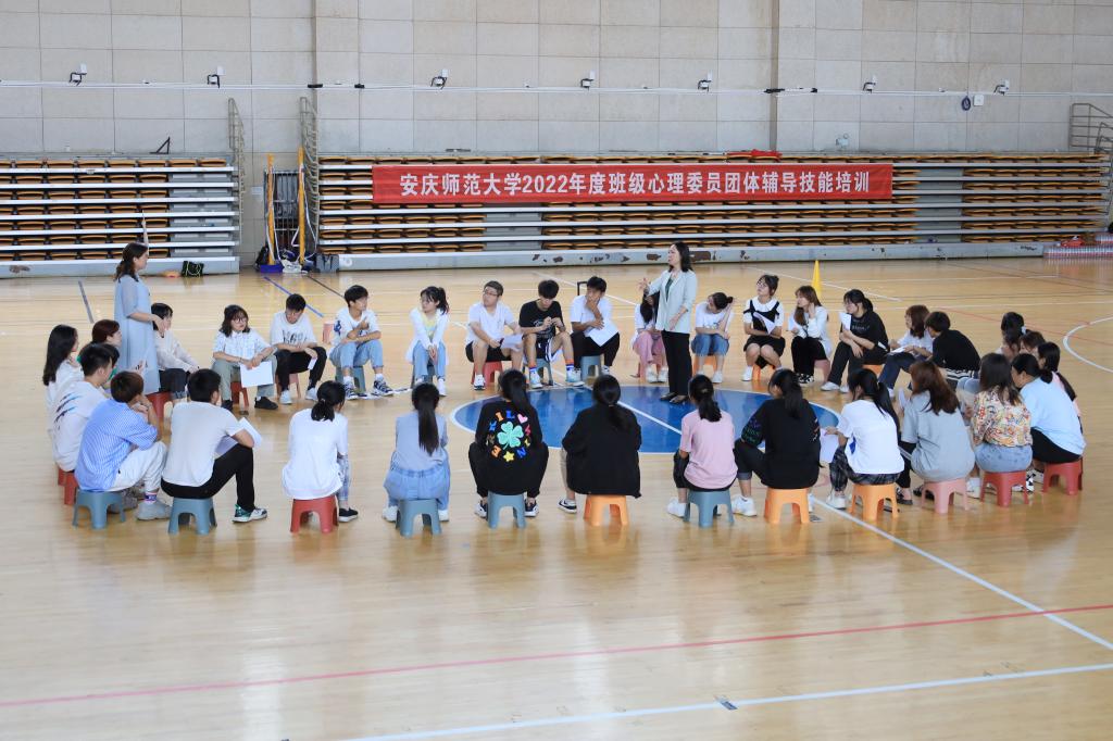 学习心理健康知识、体验团体辅导实践、交流心得领悟感受……6月4日,beat365英国官网网站大学生心理健康教育与服务中心联合安庆市第六人民医院开展“2022年度班级心理委员团体辅导技能培训”。医师储改铭、胡孝芬与胡丽珍带领2021级全体班级心理委员从教室到场馆、从理论到实操,打造一堂“一站式”团体辅导技能培训课。