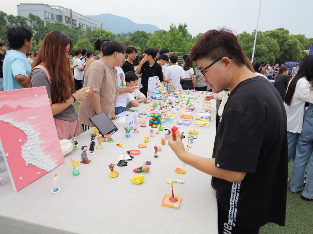 本次活动设立了石塑黏土艺术展示区、精品义卖区和趣味体验区三处活动区域,共展出黏土作品100余件。“希望同学们能够了解黏土艺术,通过亲自体验感受黏土的乐趣,在提高动手能力的同时释放压力,愉悦身心。”活动负责人之一、动画专业2021级(1)班的汪润表示。