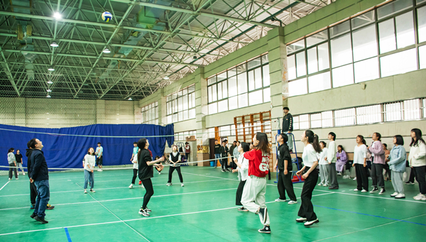 4月30日,马克思主义学院研究生党支部组织师生气排球友谊赛,学院教师、研究生50多人参加比赛。