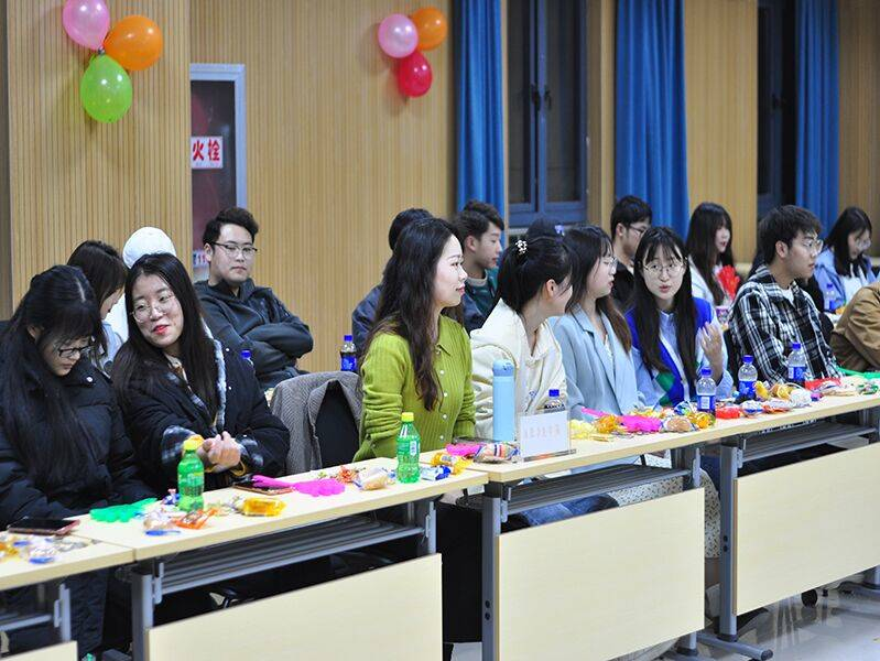 主题团日活动。4月4日晚,2020级电子商务专业辅导员老师钱宁和两个班级70余名同学在M112教室开展了班级团日活动。本次团建采用了多种多样的素质拓展游戏,包括“谁是卧底”“正话反说”“数青蛙”和挤气球等内容。团建活动在同学们的劲歌热舞中拉开序幕,一个个精心设计的团队建设游戏激发了大家浓厚的兴趣与热情,在交叉进行的游戏体验过程中,同学们积极热情,气氛热烈。