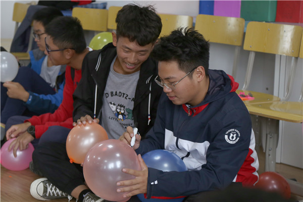 “你们可以将快乐吹进气球,写上积极情绪、画上心情好好保存。也可以将烦恼吹进去,然后“嘭”的一声,消除它。”大家领取完便利贴后,协会工作人员安排学生们围坐成一个圈,开始绘画心情气球。“希望高中时的好友能和我常联系。”“坚持住,要勇敢啊。”“辩论赛要拿冠军!”……彩色的气球被写上了对高中生活的怀念、对新环境的不适应、对未来的期许。