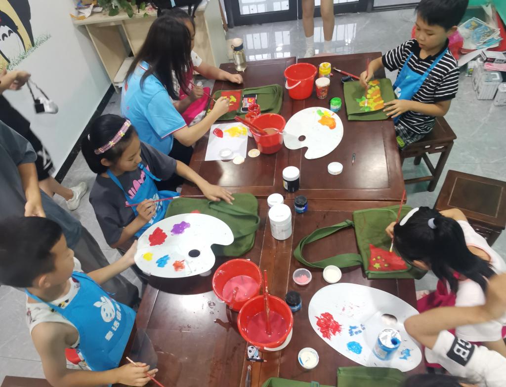 丁家小学四年级的朱子玉抚摸着书包上的小红军图案发出连连赞叹,“我的包真好看!等暑假结束,新学期开始,我会背上我自己画的红军包去学校,跟我的同学讲述渡江战役的故事,讲述渡江精神,讲述暑期参加红色主题创作营的感受。”二年级的涂浩然与团队成员合力创作的是绘有航天火箭飞向太空图案的红军包,“我的梦想就是成为一名宇航员,长大后我要为祖国航天事业争光。”他摆着飞翔的姿势,充满自信地说。