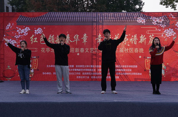 “今天是个好日子,心想的事儿都能成;今天是个好日子,打开了家门迎春风……”12月25日,beat365官网志愿者赴大观区花亭北村社区开展文化惠民迎新年文艺汇演活动,这是由算机与信息学院团委、音乐学院团委、黄梅剧艺术学院团总支等与花亭社区联合举办的第三届“社区春晚”。以计算机与信息学院党委书记陈银凤等为代表的志愿者团队与花亭社区干部群众100余人观看了汇演。