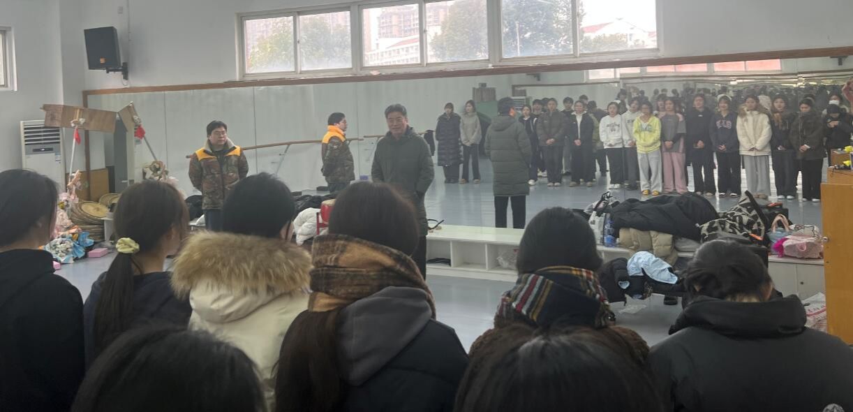 1月30日,音乐学院党委书记张铭、副院长徐冉走进学生训练、住宿等场所,亲切看望慰问参加安庆春节联欢晚会备演训练的师生。