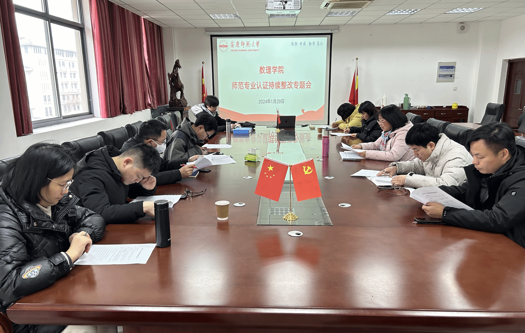 1月29日,数理学院在数理楼307会议室召开师范专业认证持续整改专题会。会议由副院长易明芳主持,认证整改工作专班小组成员、教学办公室工作人员参加会议。