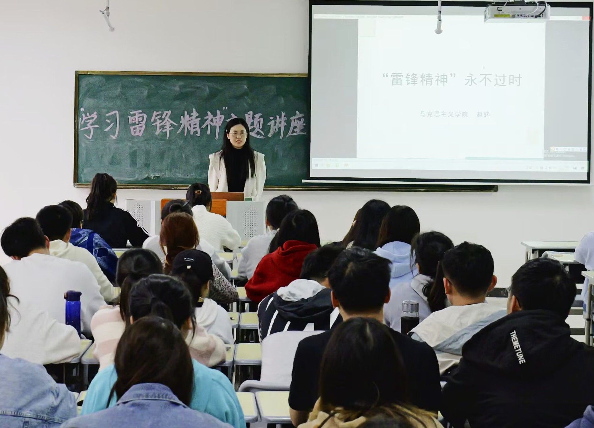赵涵博士以“雷锋精神永不过时”为主题,围绕“雷锋其人其事”“雷锋精神的主要内涵”“雷锋精神的永恒价值和时代内涵”三个方面展开讲解。“人的生命是有限的,可是,为人民服务是无限的。”赵涵通过讲述雷锋救灾、捐钱、学习等五个方面的小故事以加深学生们对雷锋精神的理解。她希望学生们能够学习雷锋无私奉献、舍己为人、刻苦钻研、艰苦奋斗的精神,在一次次的学习实践中练就本领、砥砺奋进,永远向上、永远为善。