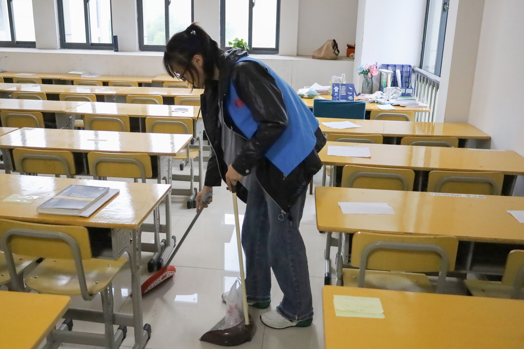 教室是学生们劳动清洁的“第一站”。摆放桌椅、擦拭桌面、清洗抹布……志愿者们有条不紊地进行着卫生打扫。应用统计学专业2022(1)班的李超越所在的小组率先完成了清洁工作。“我们任务的快速完成离不开同学们的相互配合,我在活动中感受到了团结协作的力量,很高兴为维护学院环境贡献出自己的微薄之力。”