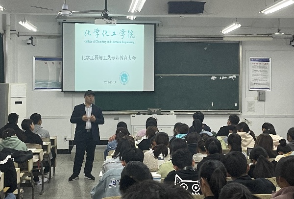 为使2021级新生更深入地了解所学专业,增强专业认同感,明确今后努力的方向和目标,近日,化学化工学院分别面向材料化学、化学工程与工艺、化学专业2021级全体新生举行三场专业教育报告会。副院长王钧伟、三名专业负责人、部分博士代表参加了报告会。