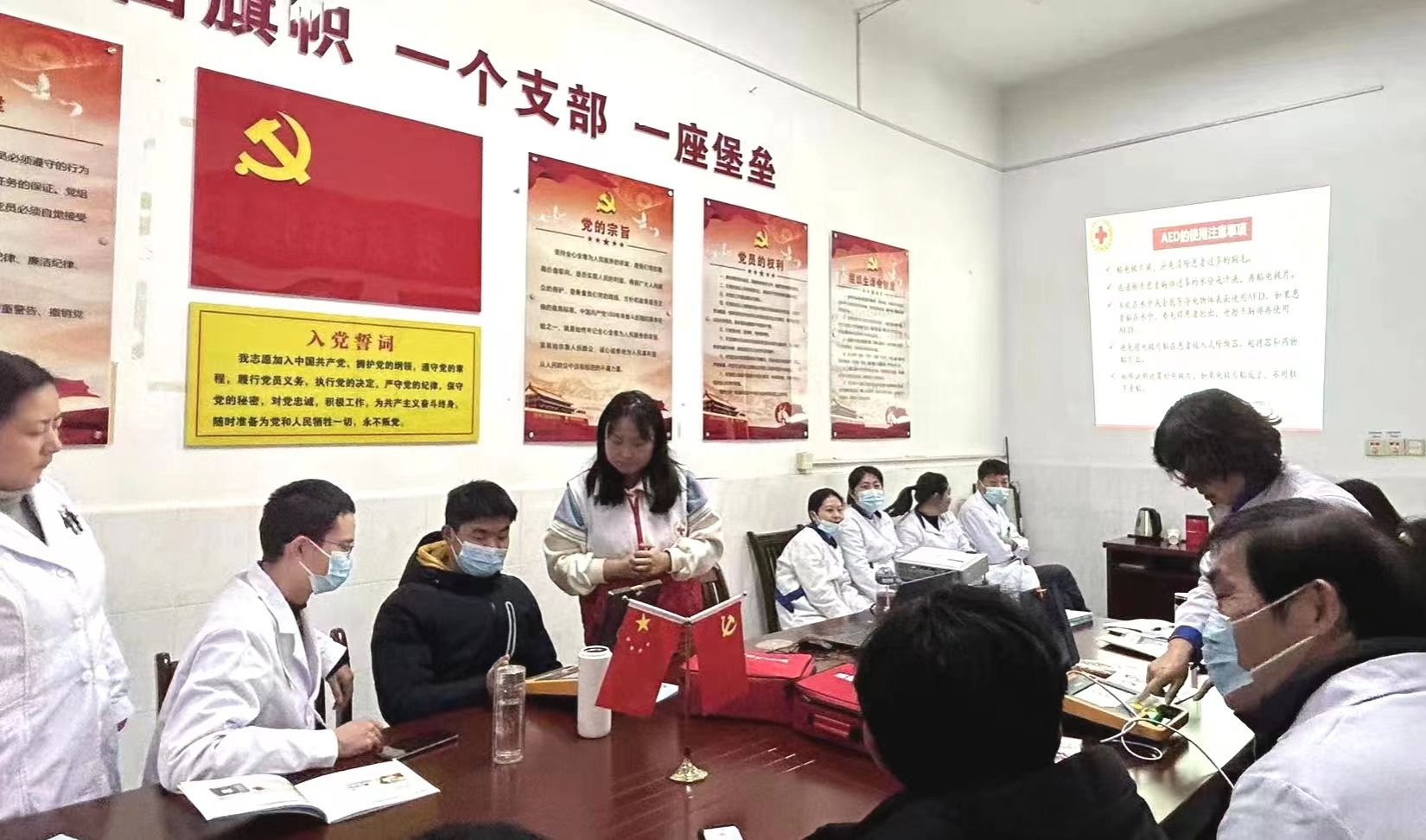 讲座还邀请了安庆市红十字会潘婷为全院医务人员开展应急救护知识培训。潘婷为大家讲解了红十字运动的相关知识、心肺复苏流程和AED的使用,大家认真学习并实操了AED的使用方法,为学校应急救护站的建立夯实了基础。