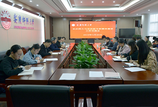 3月20日下午,安庆医药高等专科学校党委委员、宣传部部长、办公室主任朱三九率宣传部、学生处、办公室等相关单位负责同志一行来beat365官网进行新媒体建设工作交流。校党委常委、宣传部部长余精华主持交流会。党委宣传部相关负责同志、校新媒体中心指导教师及部分成员参加交流会。