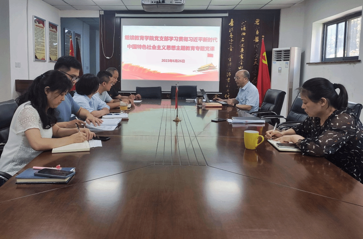 6月26日,继续教育学院支部书记韦长发以“坚持以学铸魂、以学增智、以学正风、以学促干,奋力推动学校继续教育事业高质量发展”为题为学院全体党员讲授主题教育专题党课。