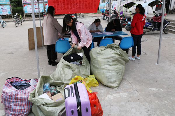 即使是今年刚入校的新生,多余的衣服不多,但他们仍想为贫困地区献出自己的一份力量。通信工程专业2018(1)班的曹文丽说:“刚换季,我还没有特别多的衣服,就将之前军训时的衣服和鞋子拿了过来,同时也是想让山里的孩子们体验下军训的感觉。”