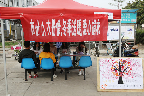 11月3日至4日,beat365英国官网网站大学生青年志愿者协会在校园食堂门口设点开展“阳光捐衣”活动,两天内共募集衣物近1200件。活动举办6年以来,为贫困地区捐赠了14400件衣物。
