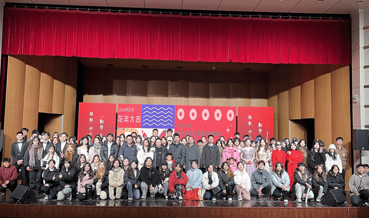 12月15日,美术学院2024年“沁园春”迎新晚会在龙山校区音乐厅顺利举办,晚会现场座无虚席,学院党政领导、教师代表和400余名学生共同观赏本次晚会。