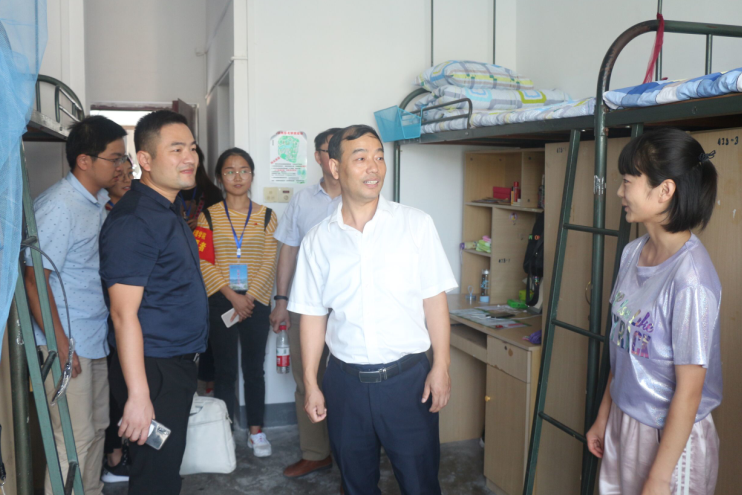 学院党政领导真切关注新生,9月8号下午,学院党委书记李亦亮、院长杨国才、副院长黄先军、副书记周毅及学院团总支负责人、全体新生班辅导员深入新生寝室,与新生及家长交流,并对同学们在新起点提出了新希望。李亦亮书记指出,“在学习上要相互促进,在生活上要相互帮助和体谅,学专业、长技能、广社交,希望四年后的你们都有一个明显的进步,学校也会为你们的成长提供资源。”