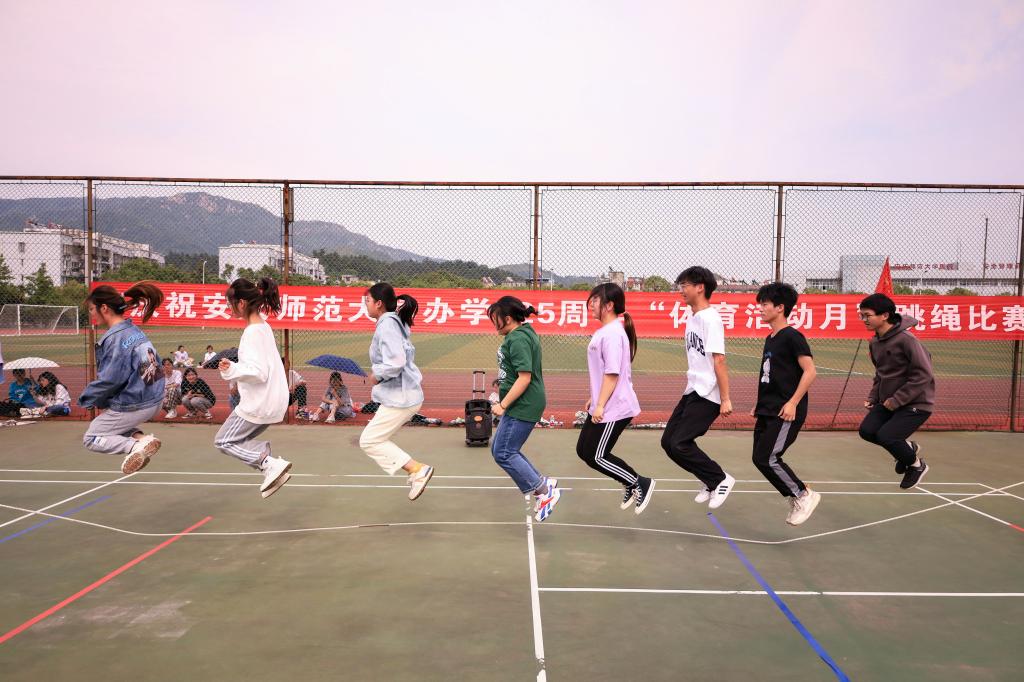 此次比赛分为个人赛、集体赛、表演赛三项内容,采用自由组队的方式进行比拼。比赛现场,学生们“花式”展现“舞绳”起跳的高端技巧和操作,一旁的观众纷纷拿出手机记录下精彩镜头。经过一番激烈的“绳上之战”。最终,来自教师教育学院的队伍以84分的总分获得团体第一名。