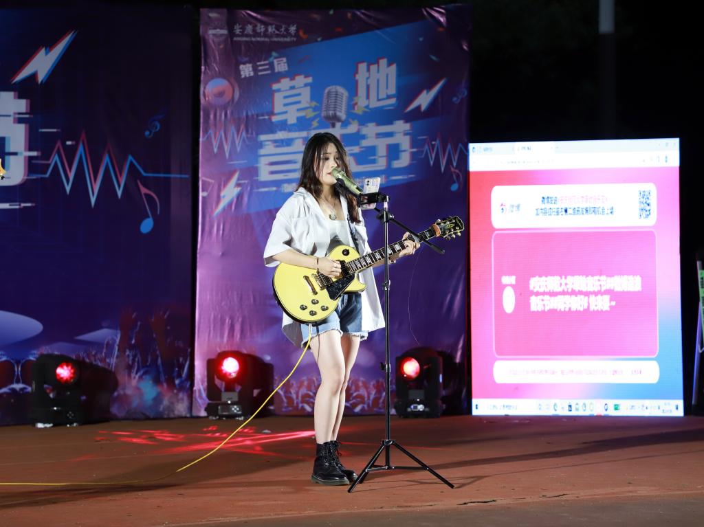 学前教育专业2021(1)班的刘晓艳原本只是陪朋友观看演出,在现场的感染下她毛遂自荐,互动环节为观众倾情演唱一首《东西》,“草地音乐节这个活动真是太酷炫了,让我忍不住也上台为音乐‘喝彩’。”