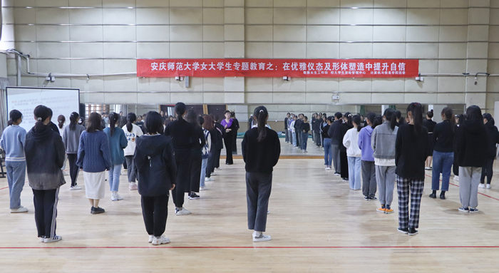 11月17日,敬敷女生工作坊、校大学生资助管理中心联合计算机与信息学院团委在校健美操馆举办“在优雅仪态及形体塑造中提升自信”的女大学生成长专题教育活动。活动邀请东方传统文化礼仪培训师、高级模特艺术培训师、国际文化盛典“魅力夫人”环球金色使者安徽首位推广使者、美国ACIC国际注册高级礼仪培训师李蓉主讲,活动吸引了来自各学院的80余名大学生参加。