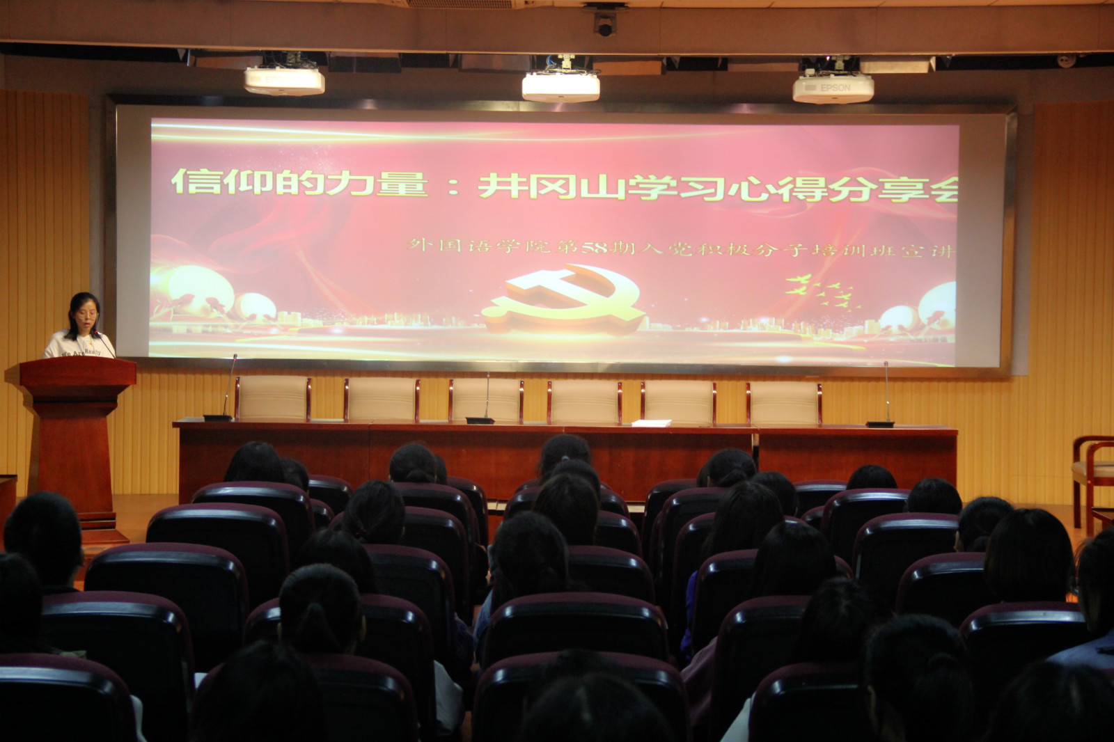 10月14日晚,外国语学院党委举行“信仰的力量:井冈山培训心得分享会”暨第58期入党积极分子培训班交流会。