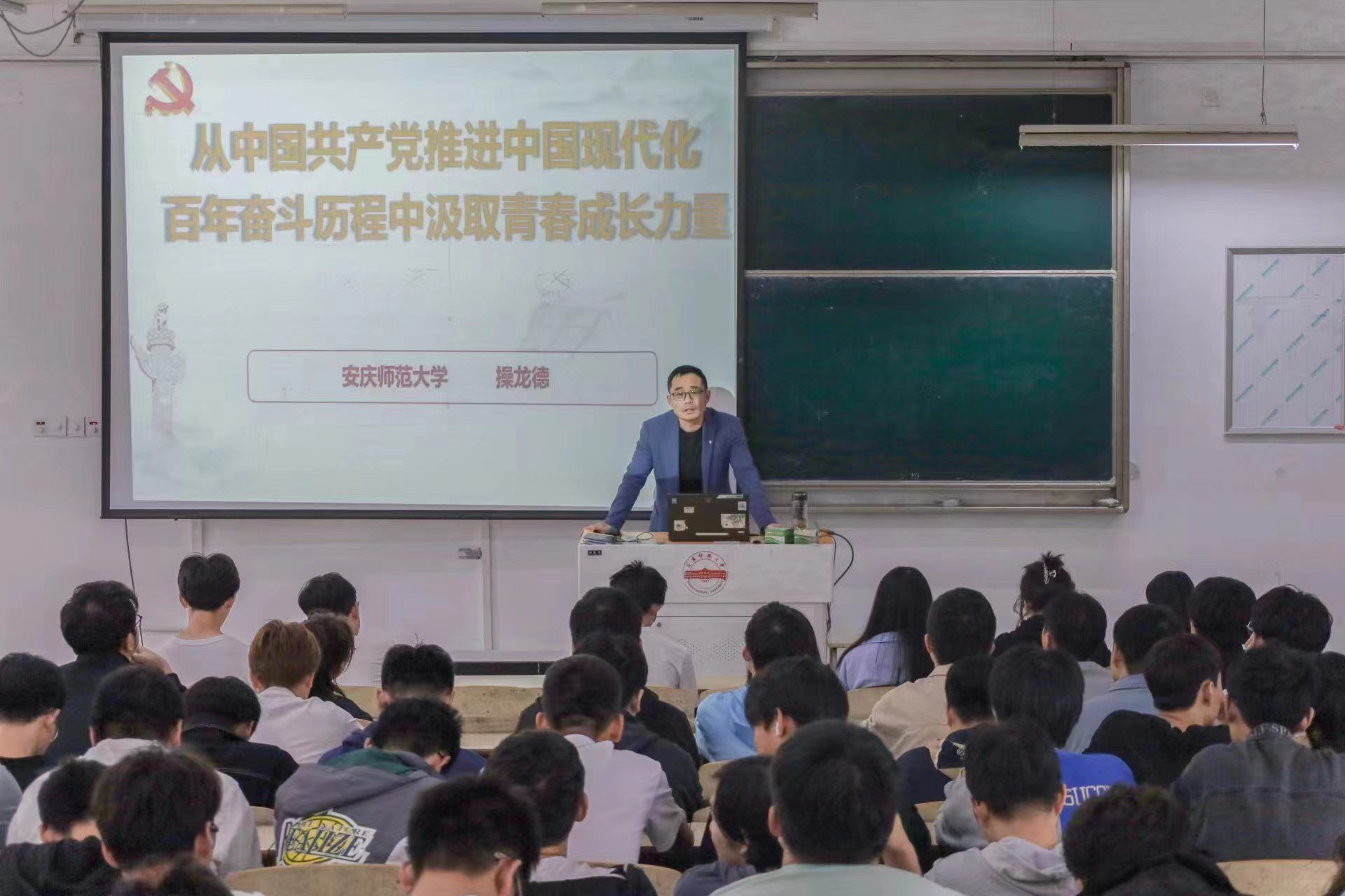 操龙德采取台上分析和台下互动相结合的方式,从确立“两步走”的大思路、把握“现代化”的大方向、探寻中国特色的“新道路”、开启现代化的历史“新篇章”四个方面进行详细讲解。他以中国百年奋斗历程为着力点,着重介绍了中国经济发展的具体形势,讲述了中国共产党对中国现代化百年奋斗历程的领导。他希望学生们从中国百年奋斗史中汲取青春成长力量,在学思践悟中坚定理想信念,在奋发有为中践行初心使命,不断增强听党话、跟党走、报党恩的思想自觉。