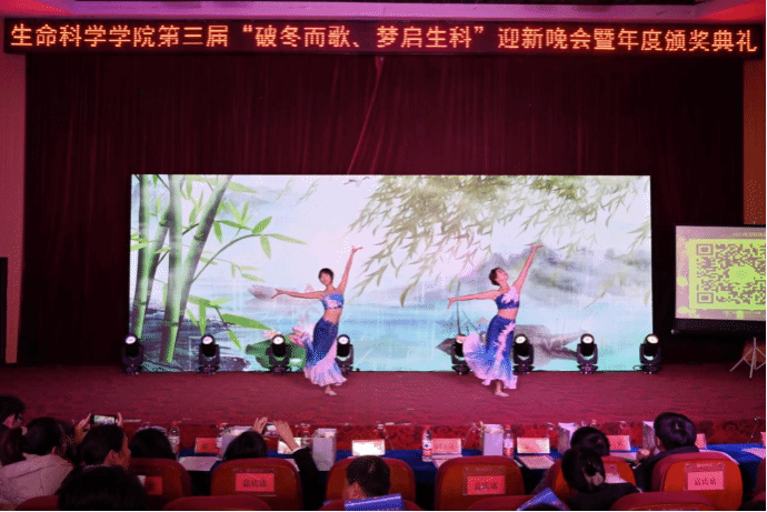 12月12日,图书馆东厅传来阵阵歌声,2023年生命科学学院“破冬而歌,梦启生科”迎新晚会暨颁奖典礼在此拉开序幕。院长周多奇、副院长吴彦、党委副书记张辉及部分教师出席此次晚会,与500余名学生共赏一场视听盛宴。